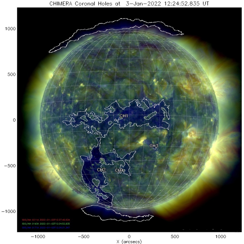 Les vents solaires provenant de ces immenses trous coronaux sud qui font face à la Terre…viendront heurter Gaia le 8 janvier 2022..