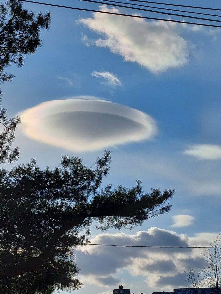 les bords ( droit et arrondis ) de ce » nuage Ufo » reflétaient les couleurs de l’ arc en-ciel nous dit Jan qui a capturé cet instant..