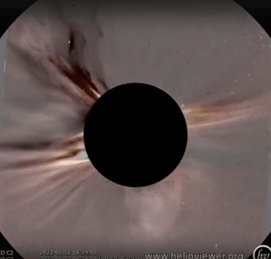 Il s’agissait probablement d’un événement de classe M ou X éclipsé par le bord du soleil. S’il avait fait face à la Terre, l’explosion aurait provoqué des pannes radio à ondes courtes ; aussi, une forte tempête géomagnétique serait en vue. Au lieu de cela, il n’y a pas d’effets terrestres, sauf l’anticipation.