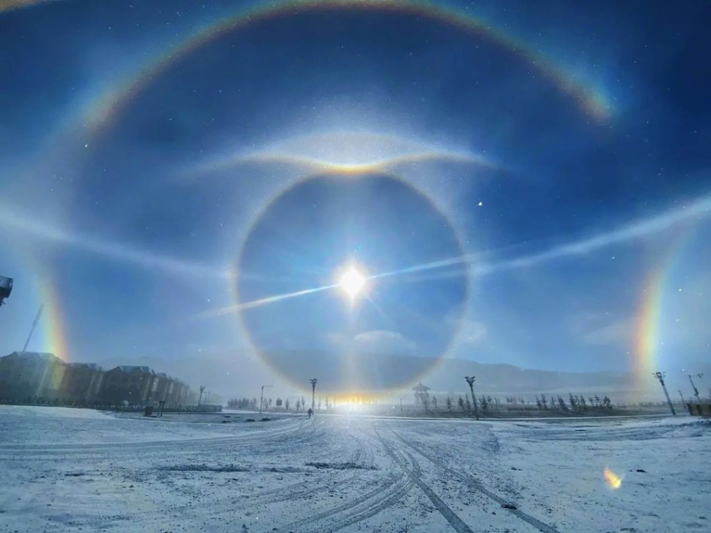 Fantastique parhélie solaire sur le lac Sairam-Nur
