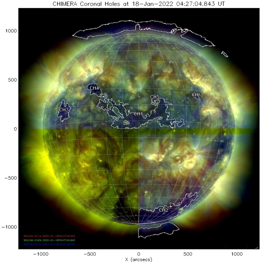 La Terre est à l’intérieur d’un courant de vent solaire qui s’écoule de ce trou coronal sud ..(photos du soleil ci-dessous)