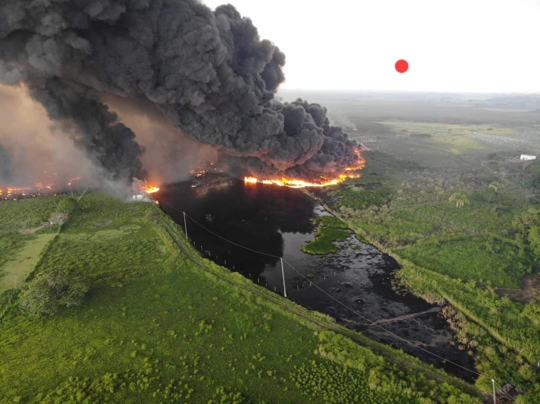 Une fuite de pipeline , de pétrole a provoqué un incendie dans une conduite située dans l’ejido de Rovirosa de Villa, La Venta