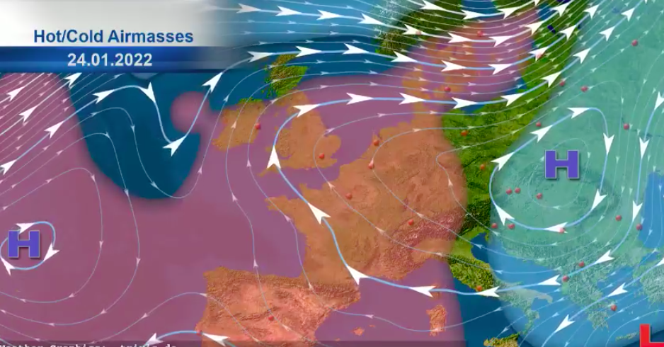 L’anticyclone qui garantit un temps sec et stable sur l’Europe de l’Ouest semble indéboulonnable jusqu’à la fin du mois. Il fait plonger l’air polaire sur l’Europe du sud-est, jusqu’en Turquie, Chypre et Proche-Orient où il neige abondamment, parfois jusqu’en bord de mer !