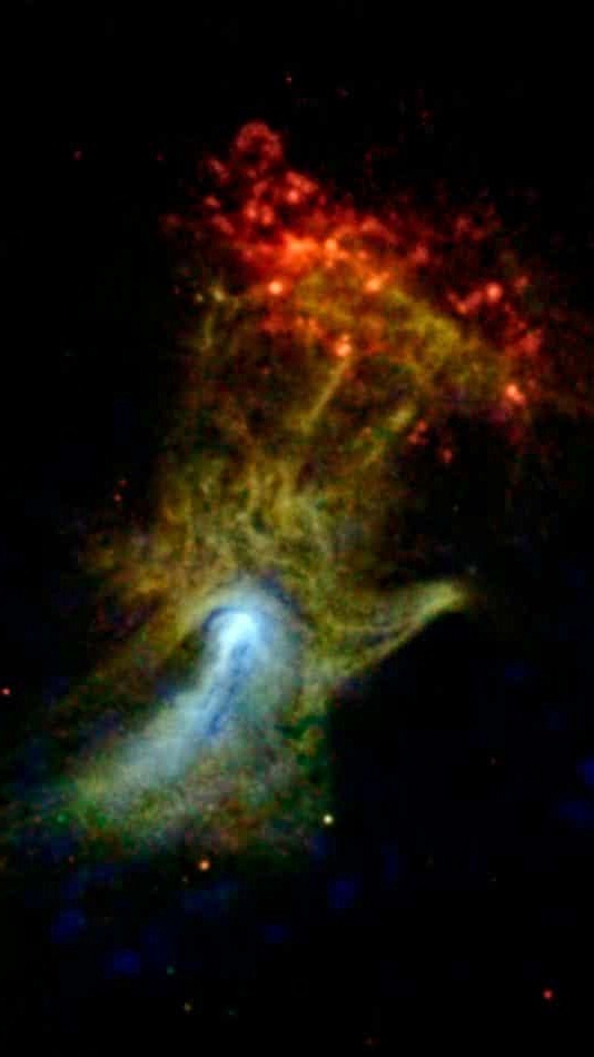 alimenté par le noyau restant, dense d’une étoile qui a explosé en supernova…