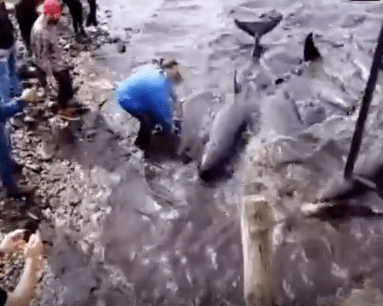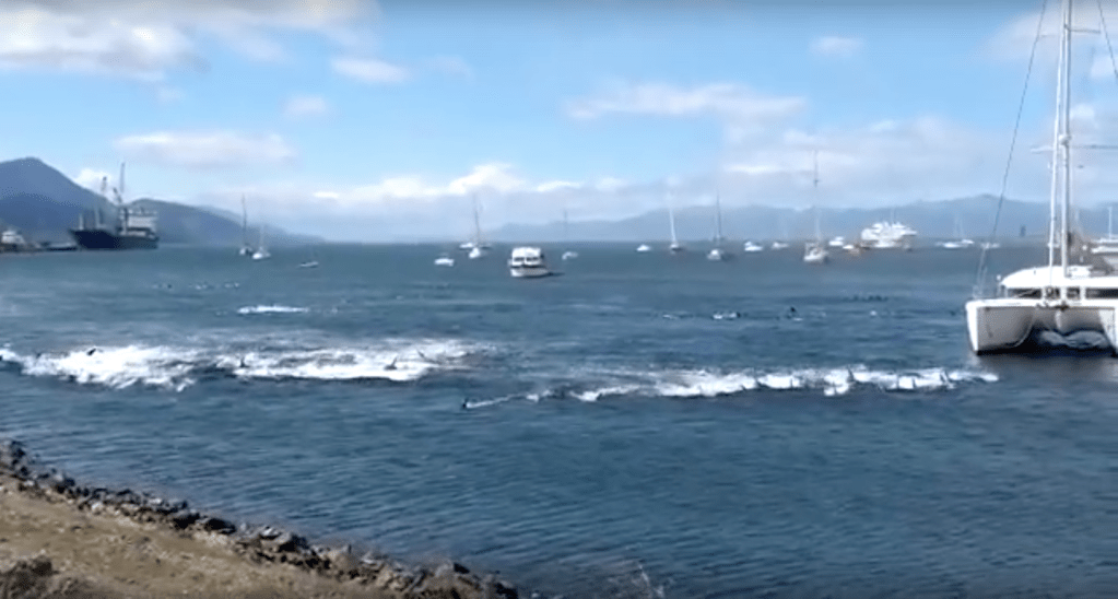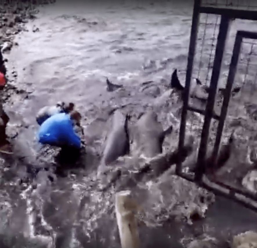 50 cétacés ,dauphins et faux orques de la famille des delphinidés ont eu un comportement étrange , comme affolés et nerveux , voire désorientés , ils ont foncé sur la plage , pour s’échouer .la population et une communauté bénévole généreuse de plongeurs de la préfecture navale les ont aidé à retourner à la mer.
