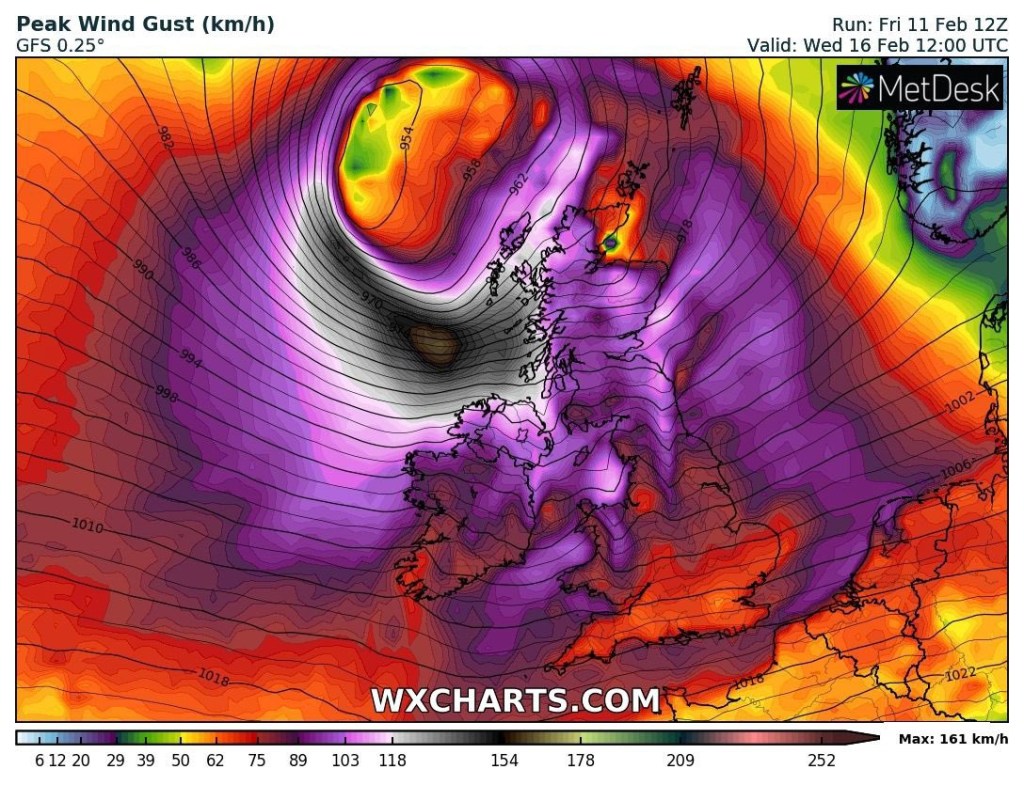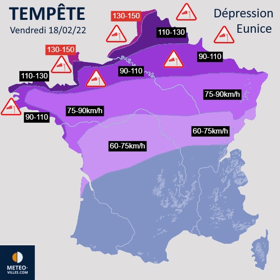 on attend des rafales de 130 à 150 Km/h localement