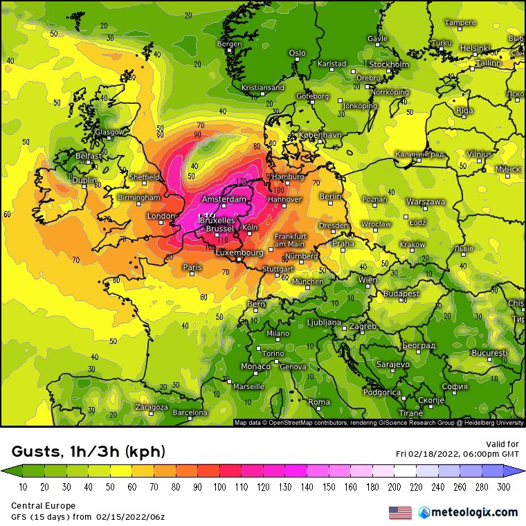 On peut voir que ces tempêtes touchent de nombreux Pays européens..