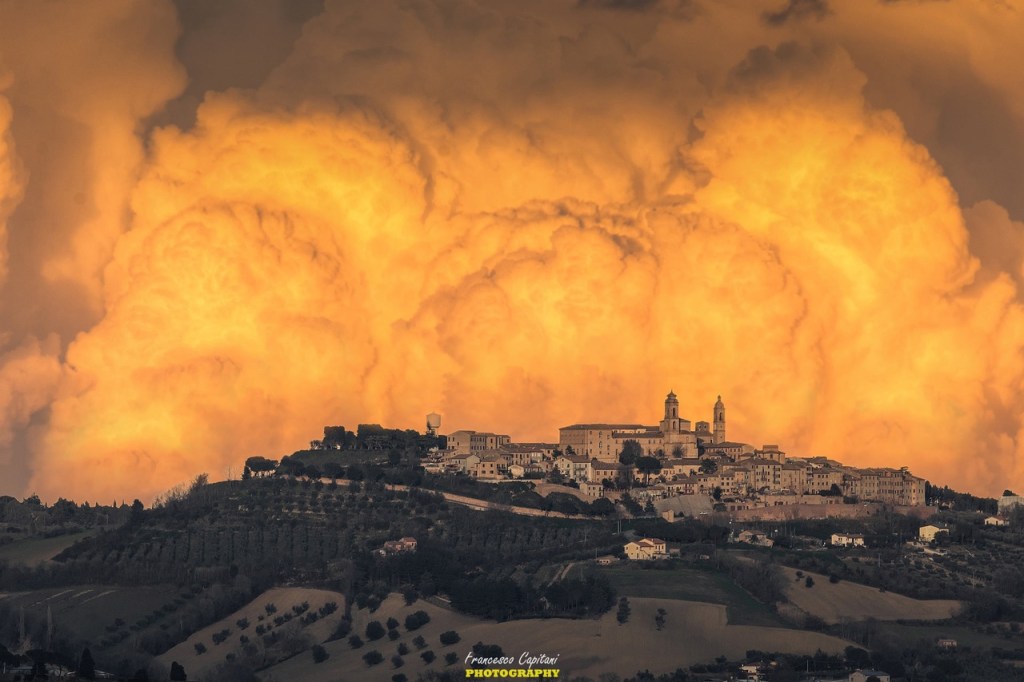 Vague de Cumulonimbus au coucher du soleil sur la mer Adriatique (Croatie, 16 février 2022)