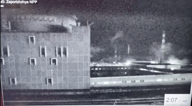 En vidéo , capture de tirs sur les 6 réacteurs en rouge.. et bruits de guerre aux alentours de la centrale