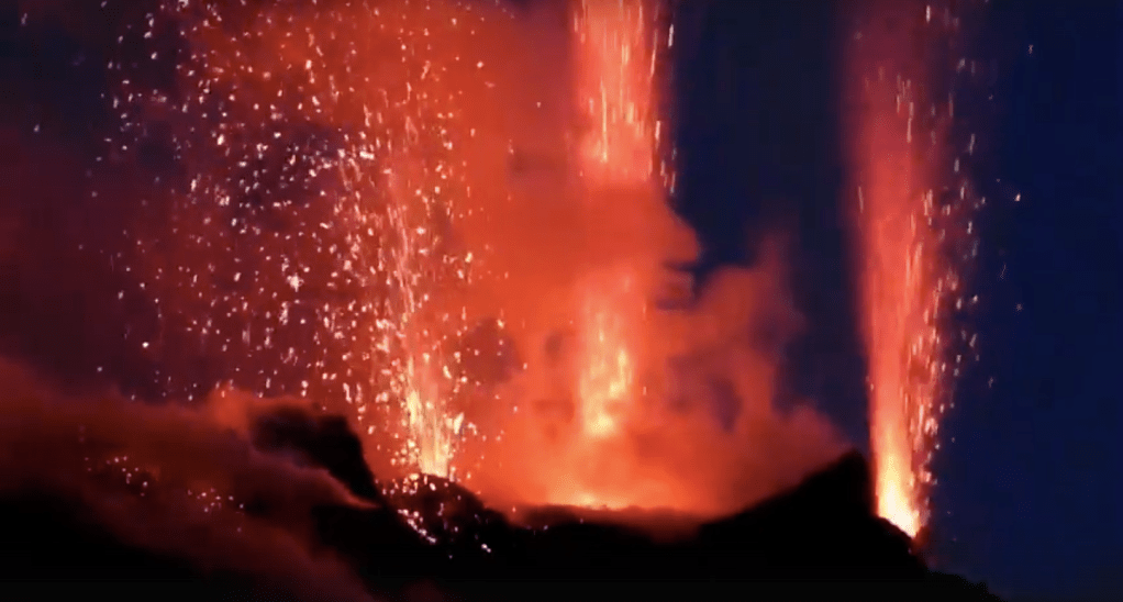 le feu de la Terre.. feu d’artificeActivité effusive du volcan Stromboli avec 4 points de sortie