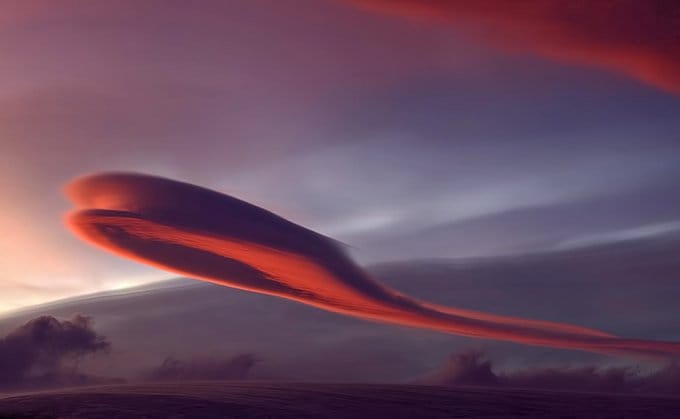 irisations et trains d’ondes , nuages hachurés par des fréquences….