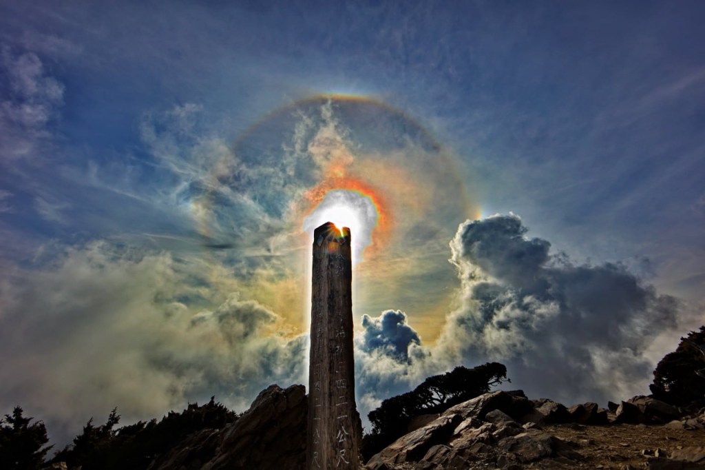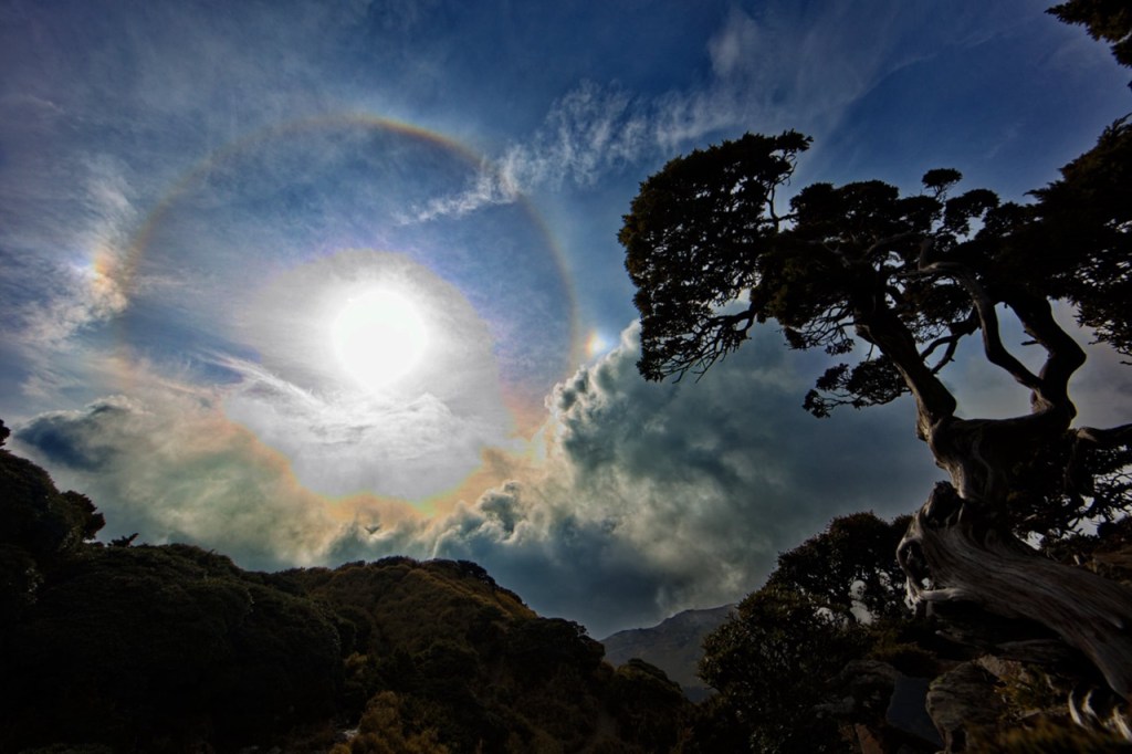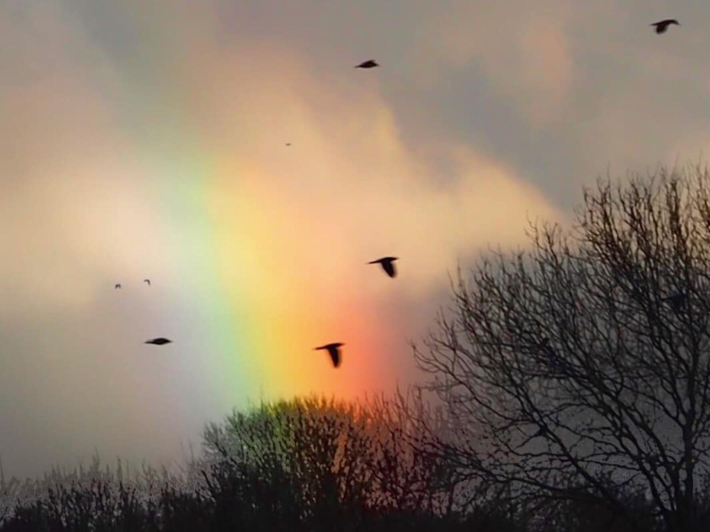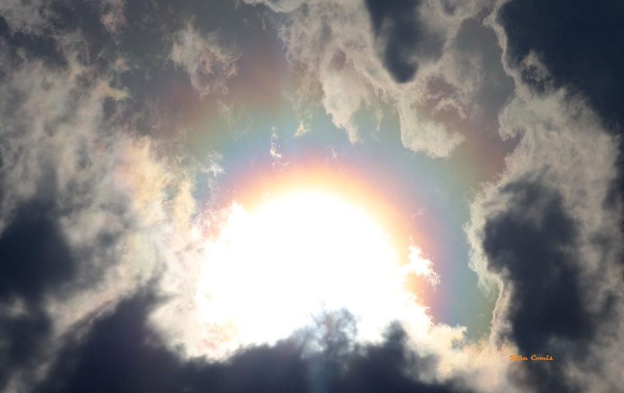 un Arc circumzénithal d’une parhélie , il y a des variante en fonction de l’atmosphère , de la réfraction des cristaux de glace.. comme sur cette photo..