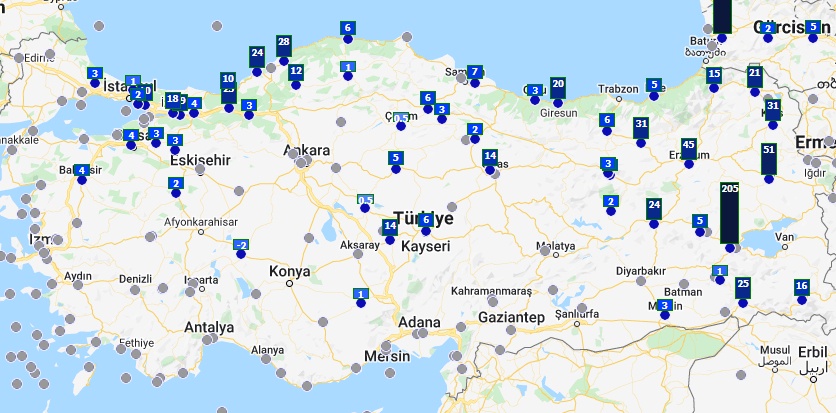 il neige au niveau de la mer en Turquie, et des profondeurs de neige impressionnantes sont signalées à l’intérieur des terres ; on peut voir les centimètres de neige qui vont jusqu’à 2 mètres dans certaines régions.