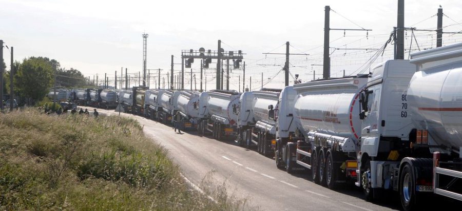 France : ( en photo ) Le dépôt pétrolier de Frontignan est pris d’assaut par les camions citernes, la plupart font 9h de queue. Il est l’un des derniers proposant du carburant dans le sud-est.