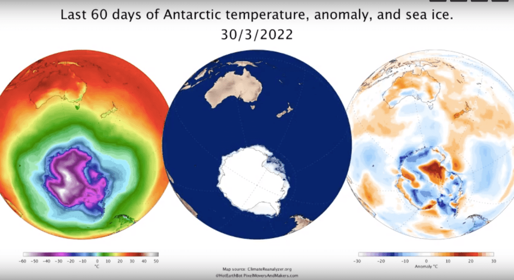 29 Mars 2022 Une vague de chaleur extraordinaire en Antarctique, 70 degrés au-dessus de la normale ( voir lien )