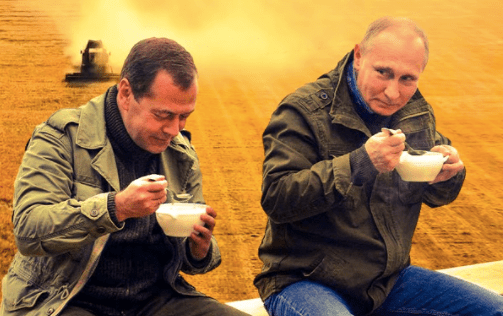 Alors que l’Occident plonge la tête dans le sable — au risque de sacrifier sa population — afin de contenter les Etats-Unis, selon la chaîne de télévision russe NTV, Dimitri Medvedev répond aux sanctions européennes envers son pays par un retour de bâton. « Nous ne fournirons de la nourriture et des récoltes qu’à nos amis (heureusement, nous en avons beaucoup, et ils ne sont pas du tout en Europe et en Amérique du Nord). Nous vendrons à la fois pour des roubles et pour leur monnaie nationale dans des proportions convenues. Nous ne fournirons pas nos produits agricoles à nos ennemis. Et nous n’achèterons rien d’eux. »