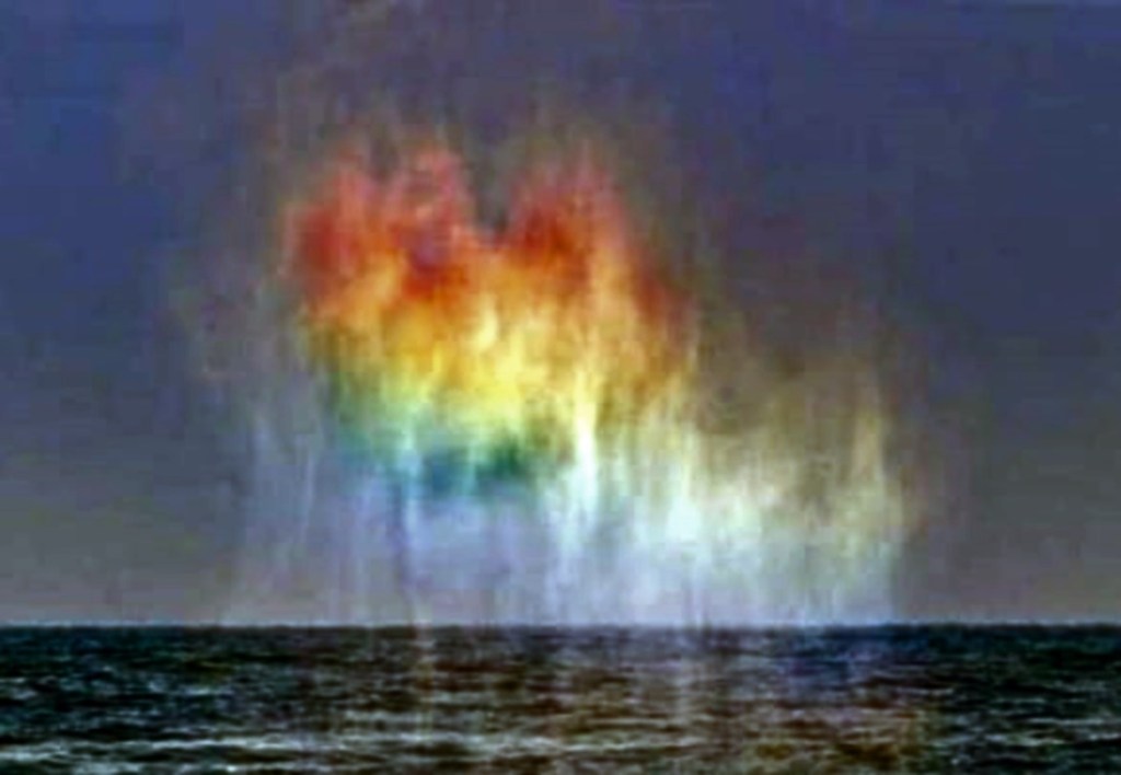notre spectre de couleur Arc en ciel est un spectre et une réduction électromagnétique du fait de la séparation avec les eaux d’en haut..