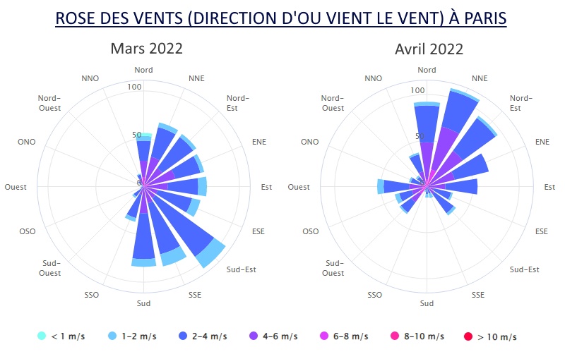 En photo la rose des vents pour Mars et Avril 2022 à Paris