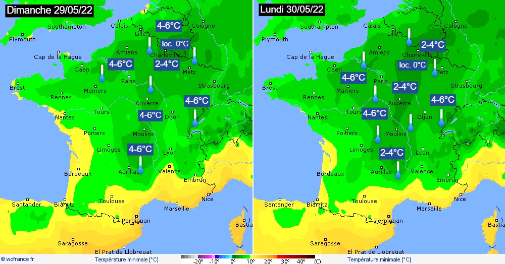 cette masse d’air froid pourrait favoriser quelques gelées blanches en France, en particulier dans les campagnes du nord-est pour dimanche et lundi. ( voir carte de 0° à 4° ) pas bon pour le potager , les cultures , les pots de fleurs ..