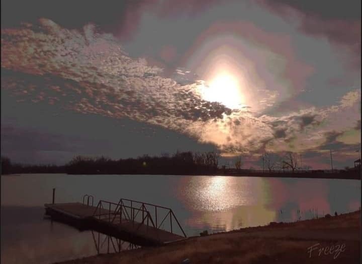 Coucher de soleil avec la Présence dans le Ciel , d’un lion signe de feu et lignée Arcturienne… le lion est aussi un signe Solaire..
