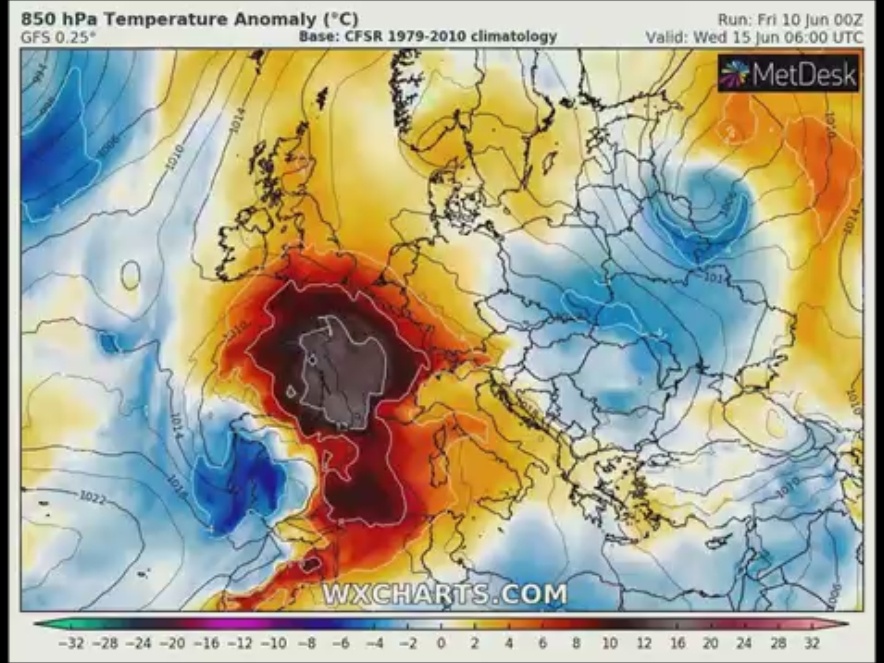 Les dernières modélisations font état d’un net regain de chaleur , voire d’une canicule, et même de températures EXTREMES , en début de semaine prochaine sur la France. Son intensité restera à confirmer, elle est dépendante du placement de la fameuse goutte froide sur la péninsule ibérique.
