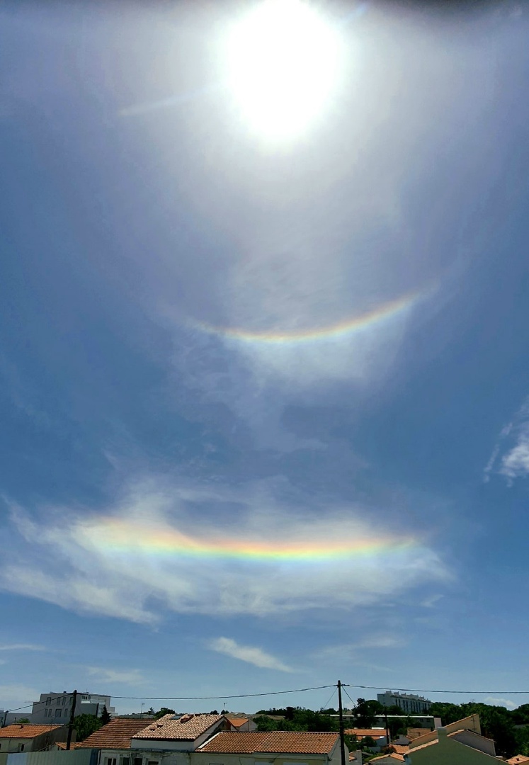 à la Rochelle, à 13h30un halo avec dessous , un arc infralatéral ou arc inférieur tangent..