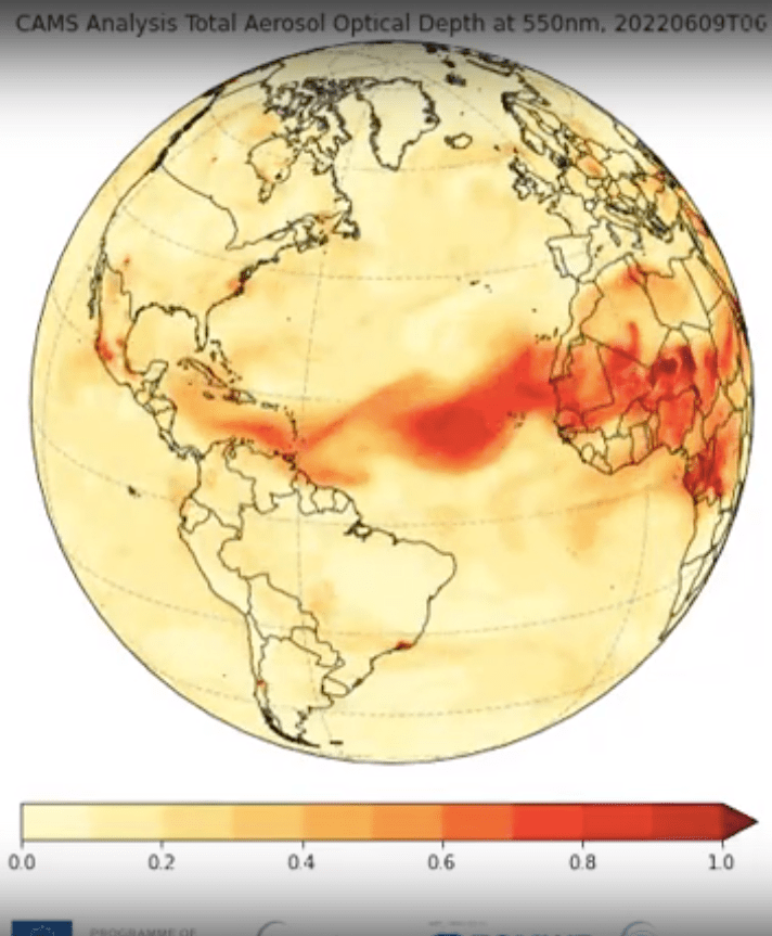 Compte tenu de son étendue gigantesque, le désert du Sahara est la principale source mondiale de poussière atmosphérique, mais il existe d’autres points chauds importants comme le désert de Gobi en Asie..
