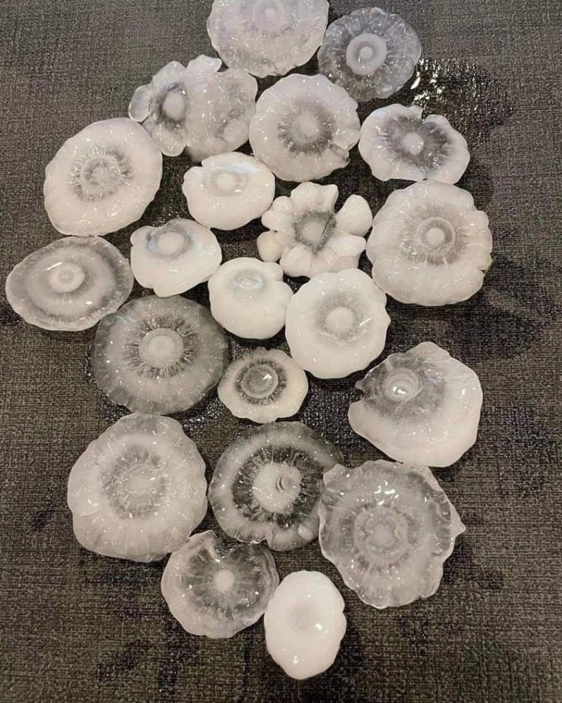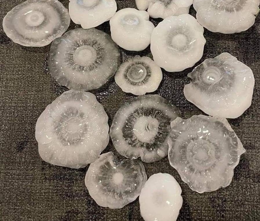Les structures des grêlons tombés dans le Loiret à la suite des orages violents. , on voit le départ , la création du noyau glaçogène.