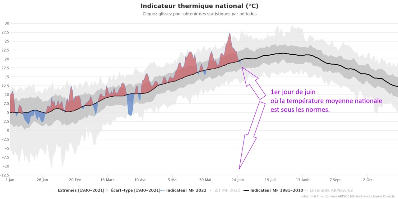 Sachez qu’aujourd’hui 26 Juin 2022 est le 1er jour de juin où la température moyenne nationale est sous les normes.