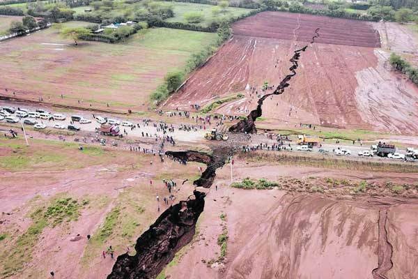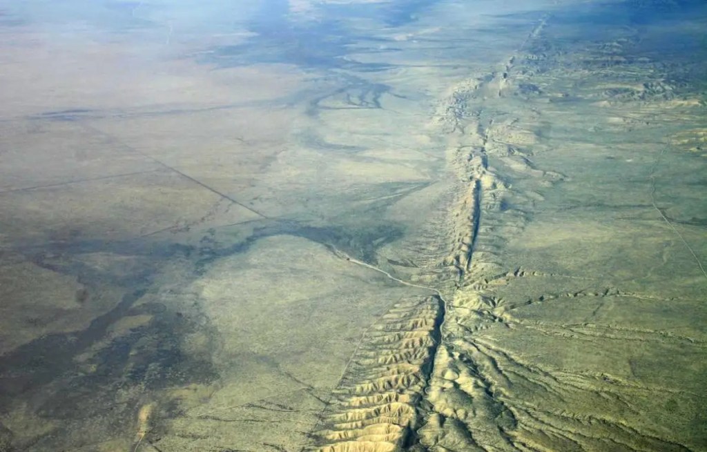 il y a des endroits sur la planète où elle est déchirée déjà, en suivant des lignes très longues. comme la faille de San Andréas longue de 1287 km.. ou la vallée du rift au Kenya..
