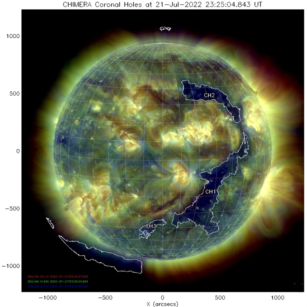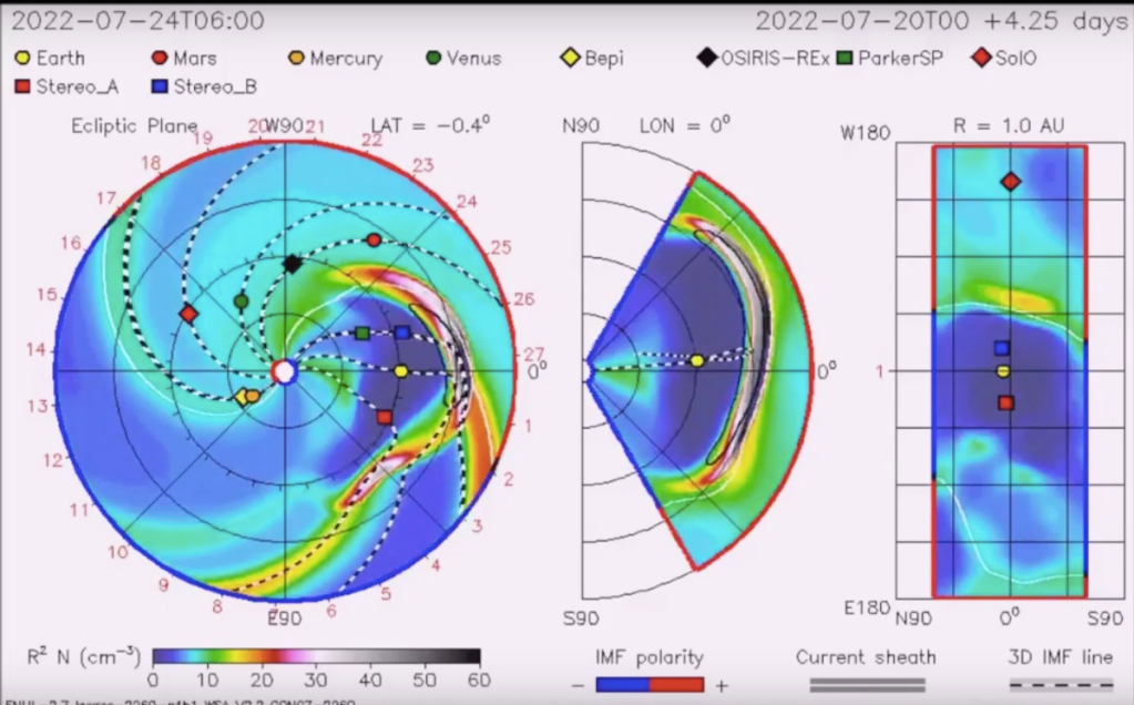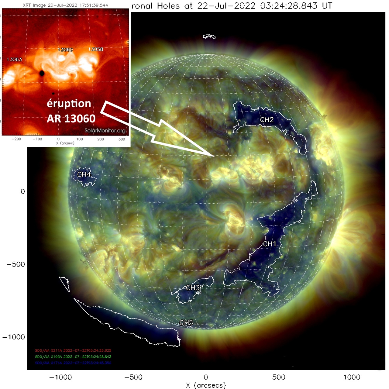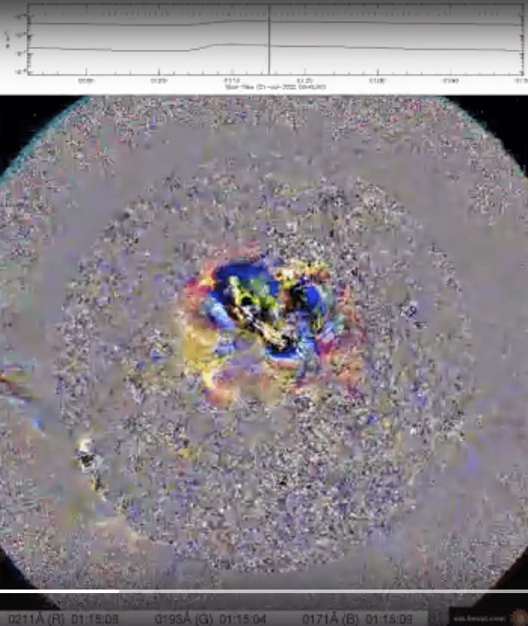 Elle peut être très violente car depuis 5 jours des courants de vents solaires portaient les énergies cosmiques sur terre , ces flux provenant d’un trou coronal qui s’ouvrait de l’hémisphère nord au sud..