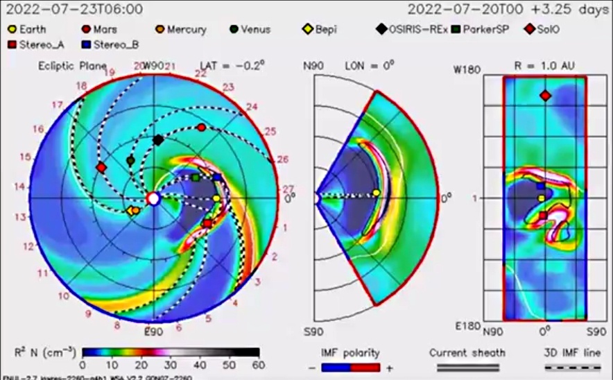Cette vague de feu Solaire , ou onde de choc provient de l’éruption d’hier ( 21 Juillet 2022 ) de la région de taches solaires AR 13060 ( située au centre du Soleil) cette éruption à générée un halo Solaire ( onde )