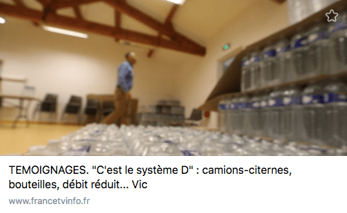 Sécheresse : les témoignages de coupure d’eau se multiplient https://www.francetvinfo.fr/monde/environnement/crise-climatique/temoignages-c-est-le-systeme-d-camions-citernes-bouteilles-debit-reduit-victimes-de-la-secheresse-certaines-communes-affrontent-deja-des-penuries-d-eau-potable_5289796.html Partager : Partager sur Telegram(ouvre dans une nouvelle fenêtre) Telegram Partager sur WhatsApp(ouvre dans une nouvelle fenêtre) WhatsApp Email a link to a friend(ouvre dans une nouvelle fenêtre) E-mail Partager sur Facebook(ouvre dans une nouvelle fenêtre) Facebook Partager sur X(ouvre dans une nouvelle fenêtre) X Similaire Les commentaires sont fermés.