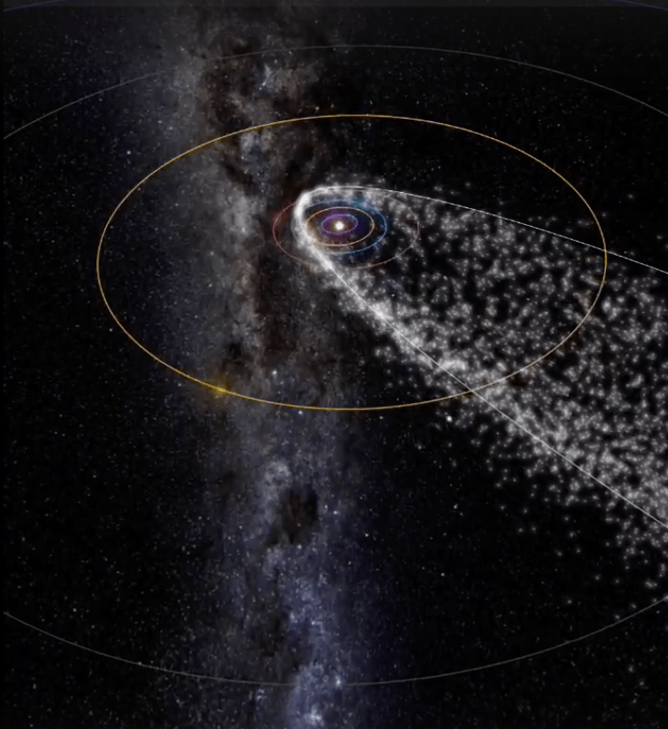 voici à quoi ressemble la traînée de débris lorsqu’elle orbite autour du Soleil et croise la Terre