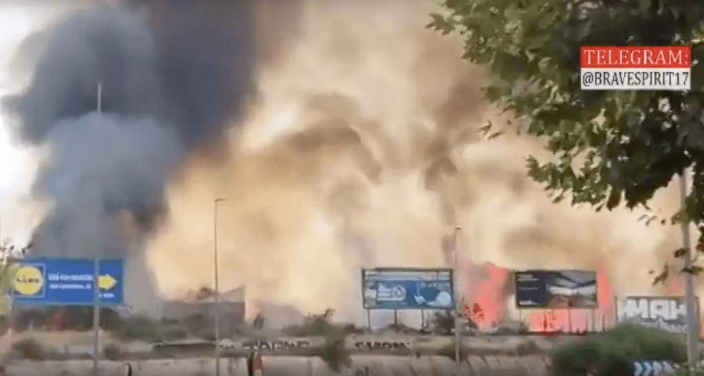 Incendie impressionnant et spectaculaire à Guardamar del Segura . Les températures élevées et extrêmes , le faible taux d’humidité et le vent favorisent la propagation des flammes