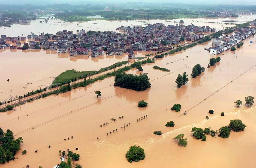 Crue soudaine sur une rivière de montagne dans le comté de Pengzhou . Sept décès sont signalés