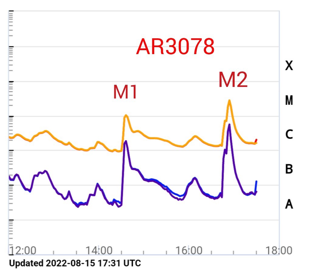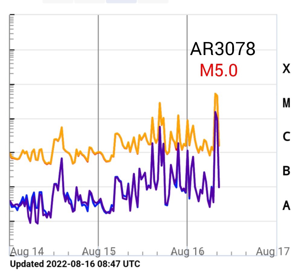 le 15 Août 2022 , il y a eu un CME de M1.0 puis de M2.7 puis le 16 Août une autre de M5.08
