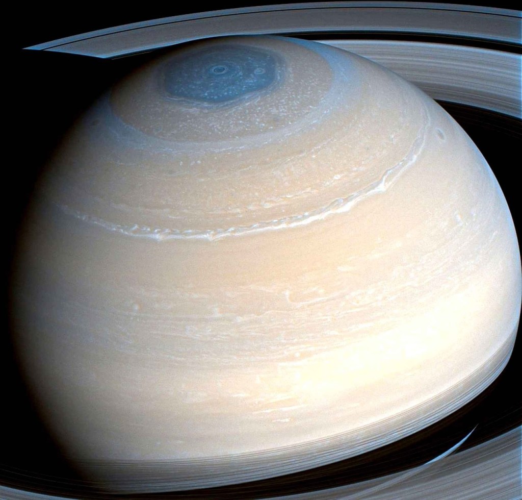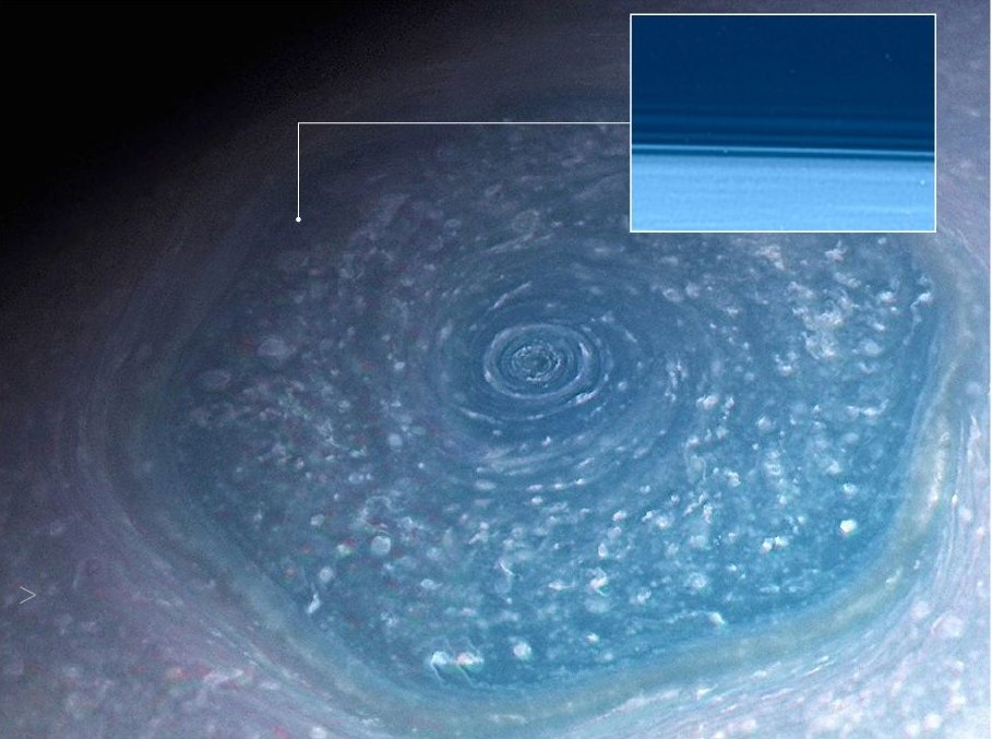 sur la dernière photo de Voyager, on peut même voir une tempête hexagonale ou cyclone stratosphérique qui a été capturé ..