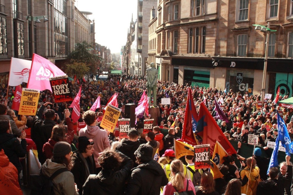Plus de 100 000 personnes ont manifesté aujourd’hui au Royaume-Uni contre la hausse du coût de la vie avec des prix de l’énergie ayant doublé en un an. Les cheminots ont lancé une nouvelle grève massive face à l’inflation proche des 10% ..