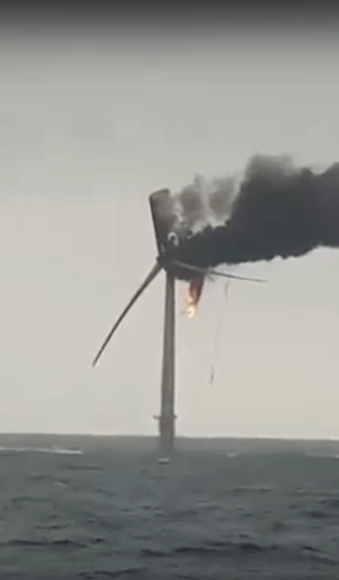 Au cour d’orages et d’une acticité électrique intense , le Feu Céleste , la foudre frappe une éolienne marine à Arklow, en Irlande le 19.10/2022 dans le comté de Wicklow
