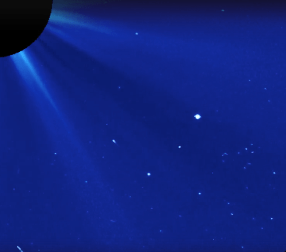 on peut voir qu’elle est de taille importante , qu’elle est brillante et possède une queue..