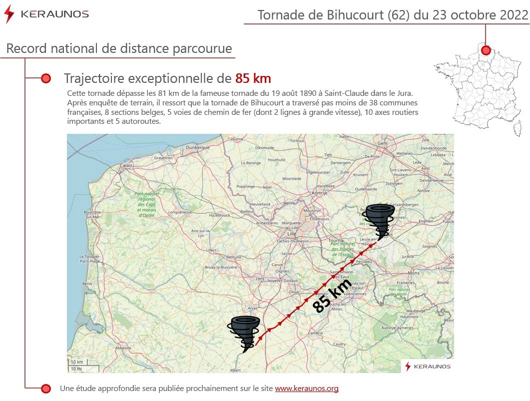 La tornade EF3 qui a vaporisé 80% de la commune de Bihucourt a parcouru au moins 85 km entre la France et la Belgique le 23/10/2022