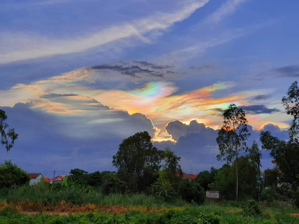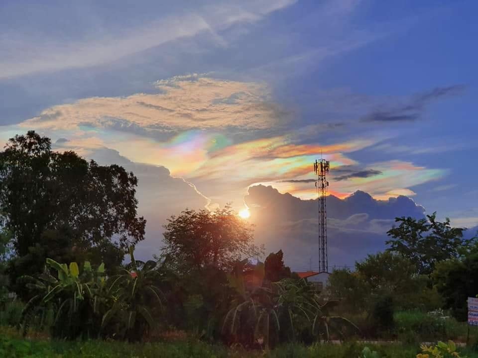 la diffraction de la Lumière nous fait croire avec l’Arc en Ciel qu’y a une bande qui est violette, une bande qui est rouge..