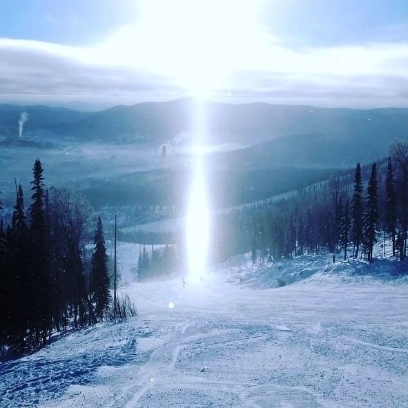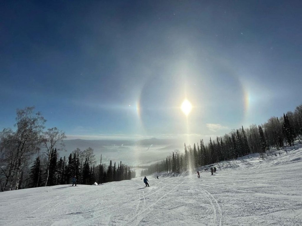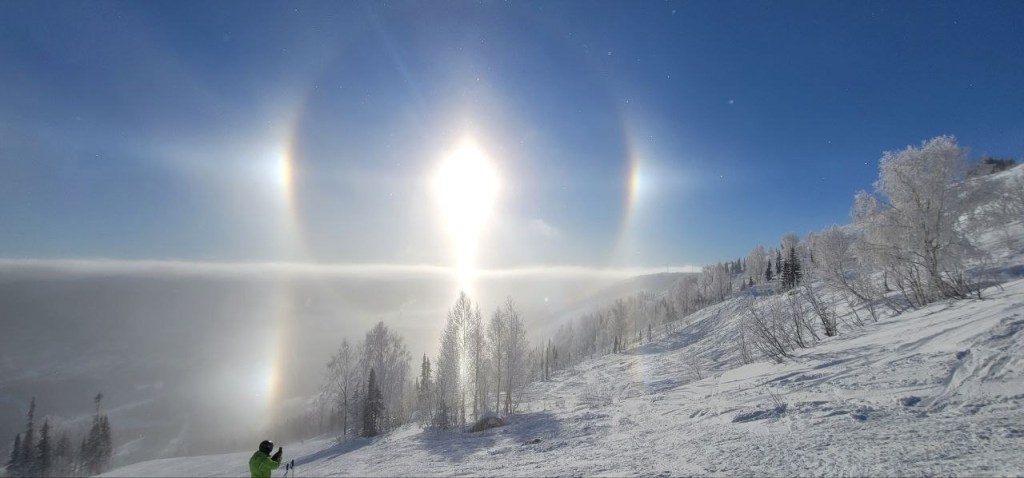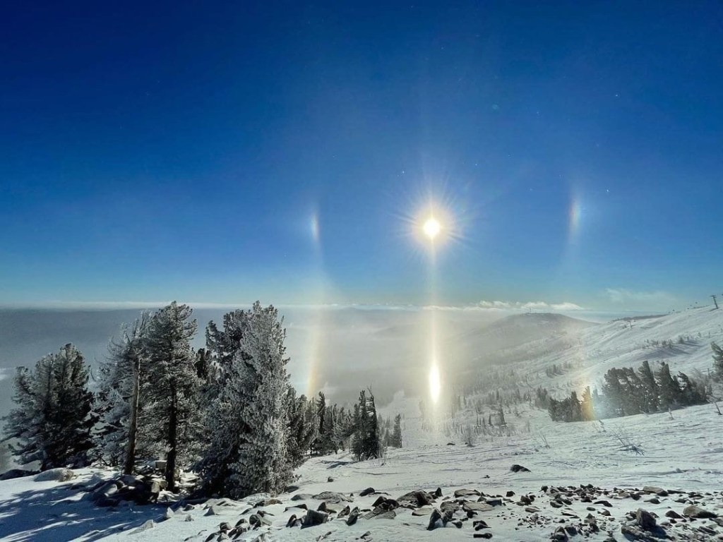 Flamme blanche et parhélie dans la station de ski de Sheregesh Russie région de Kemerovo, 4 décembre 2022.