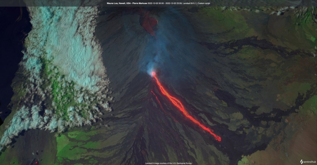 Image satellite de l’éruption du volcan Mauna Loa à Hawaï, États-Unis