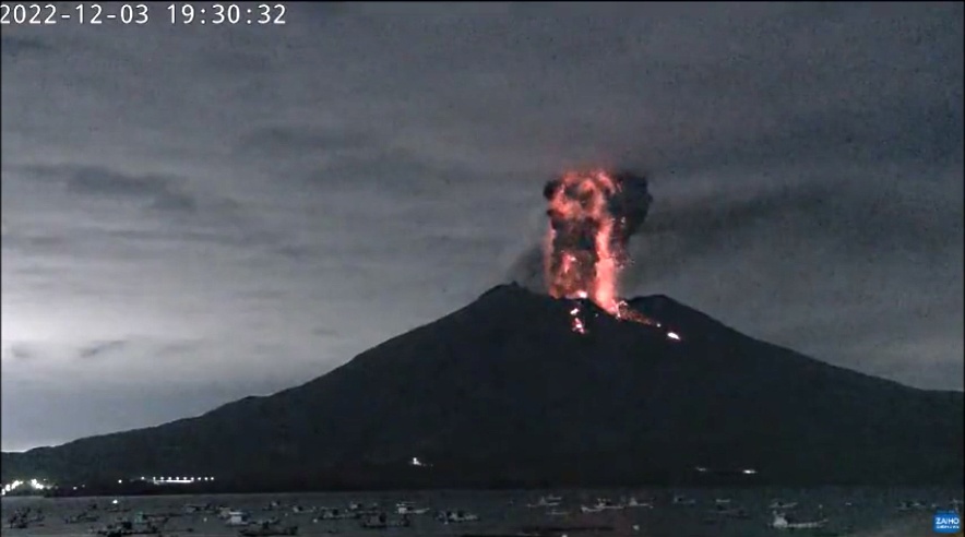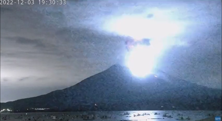 l’éruption du Sakurajima, au Japon est accompagnée d’éclairs volcaniques , de foudre volcanique , d’un orage volcanique..