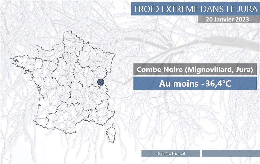 Les -36.4°C de la Combe Noire (39) ont été relevés via le réseau de station météorologiques , La Combe Noire se trouve dans les hauteurs d’une forêt, à 1000m d’altitude..