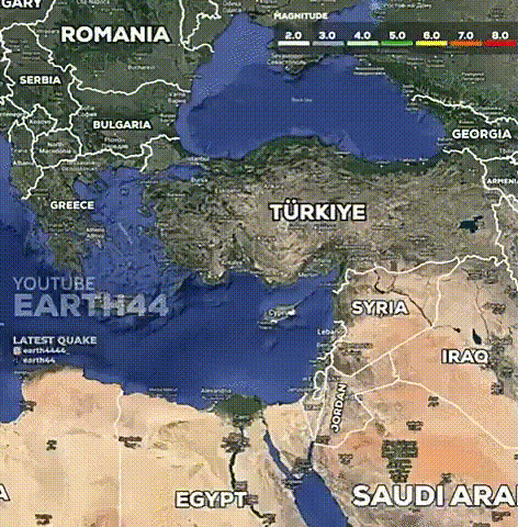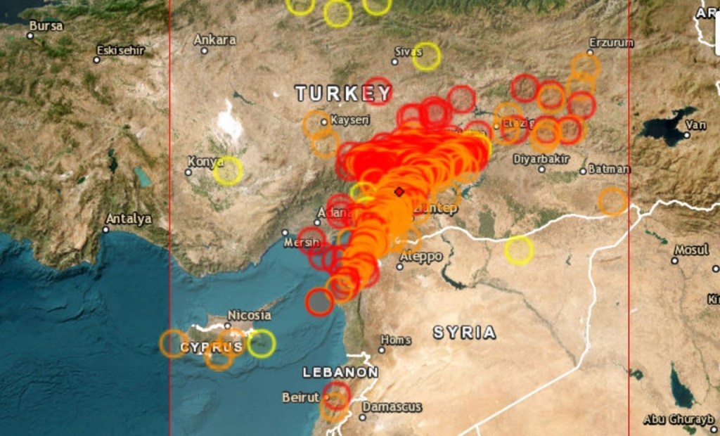 Les tremblements de terre d’une magnitude supérieure à 4,0 qui se sont produits en Turquie et en Syrie le 6 février 2023.