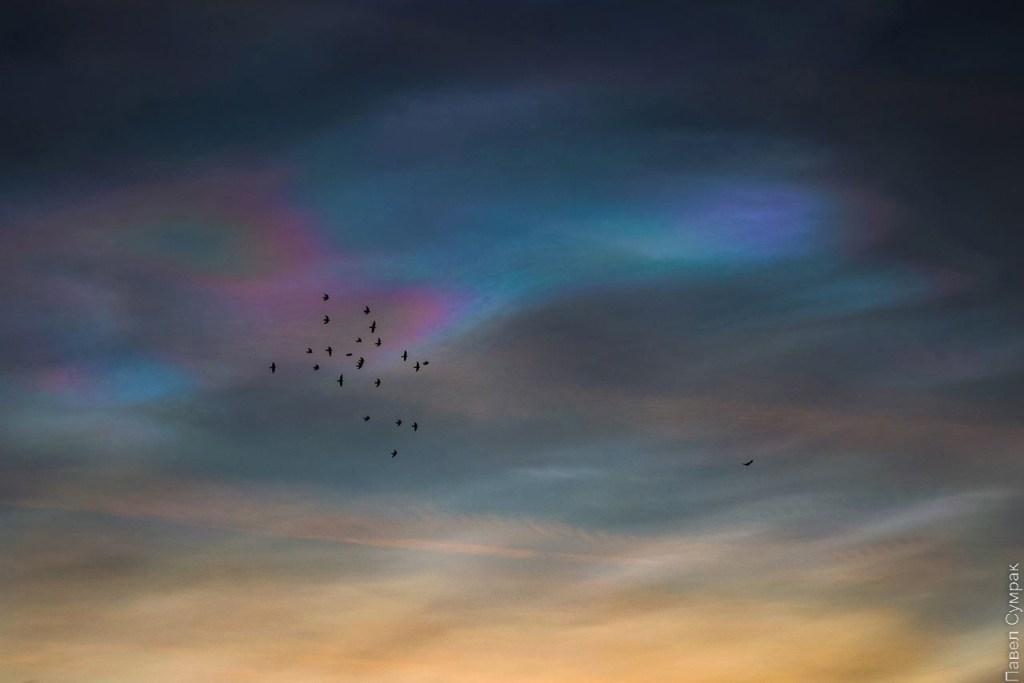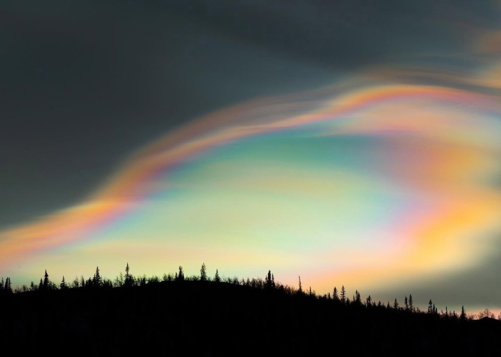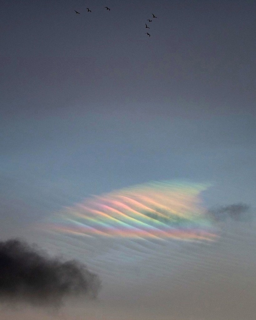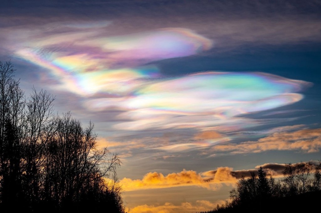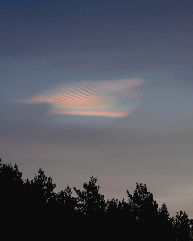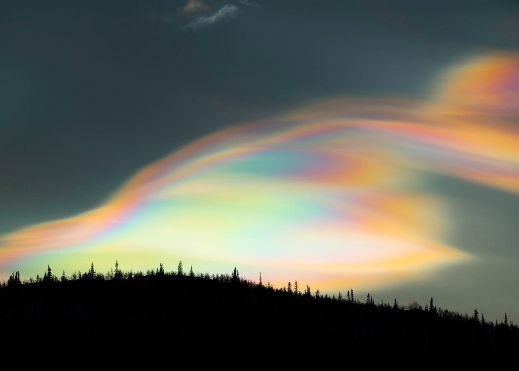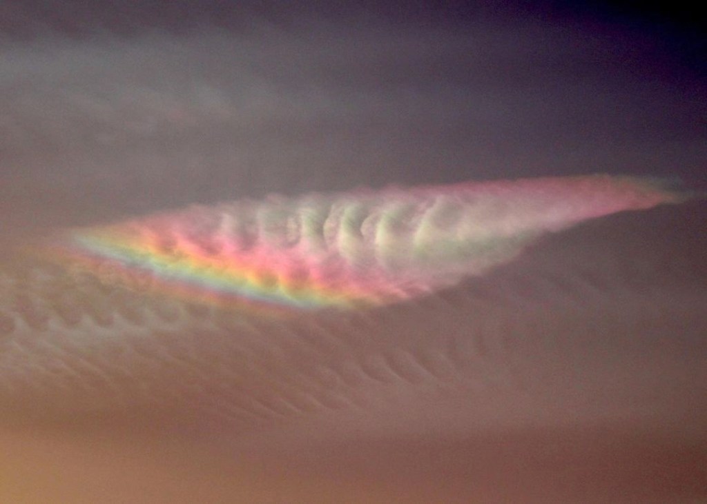 apparitions de nuages nacrés hachurés par des fréquences , des trains d’ondes.