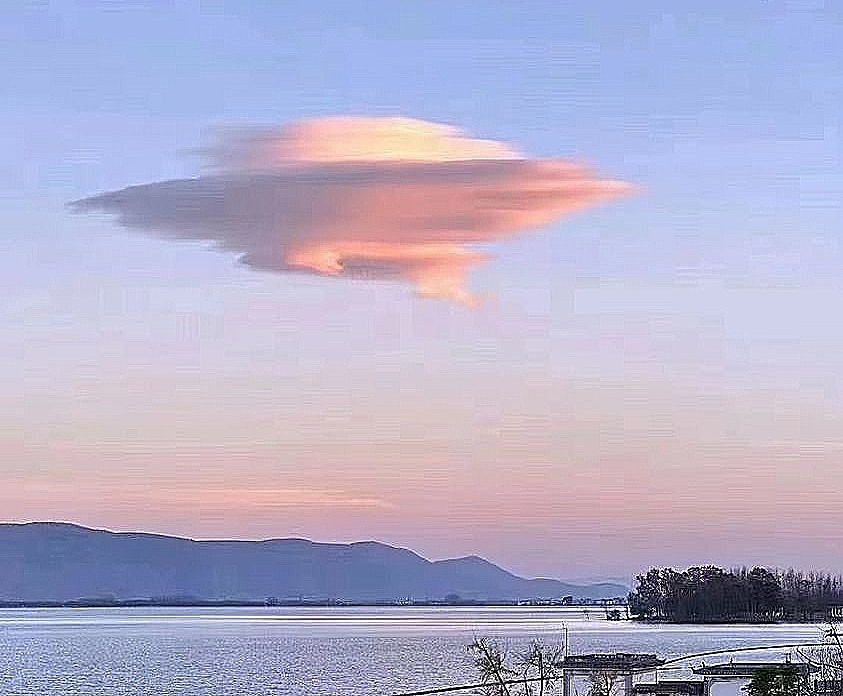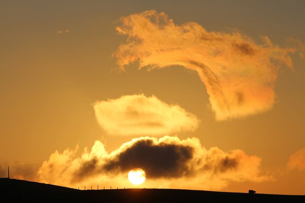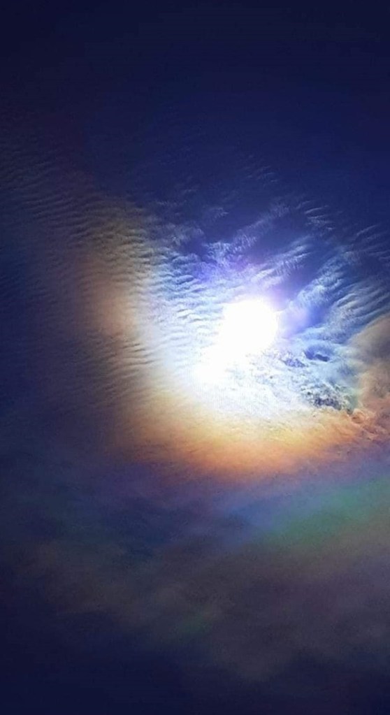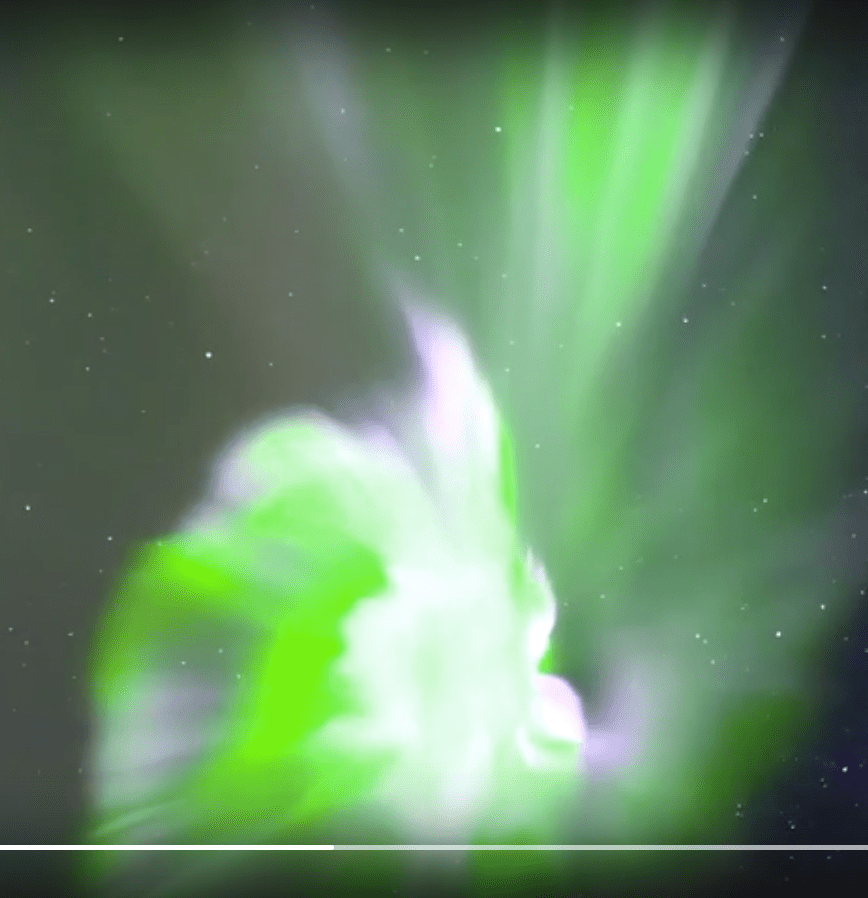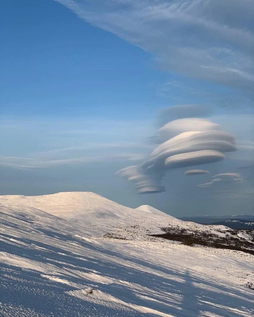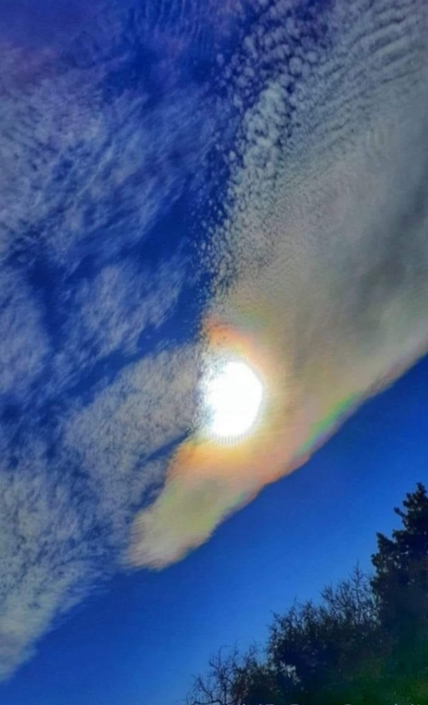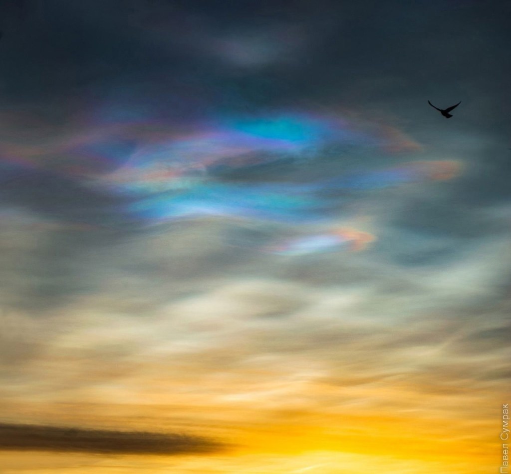 apparitions de nuages nacrés hachurés par des fréquences , des trains d’ondes.